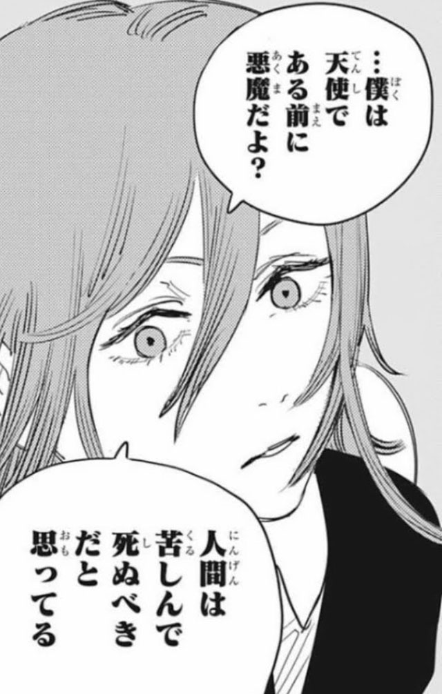 天使の悪魔は、地獄の悪魔の力で、デンジらとともに地獄に落とされます。