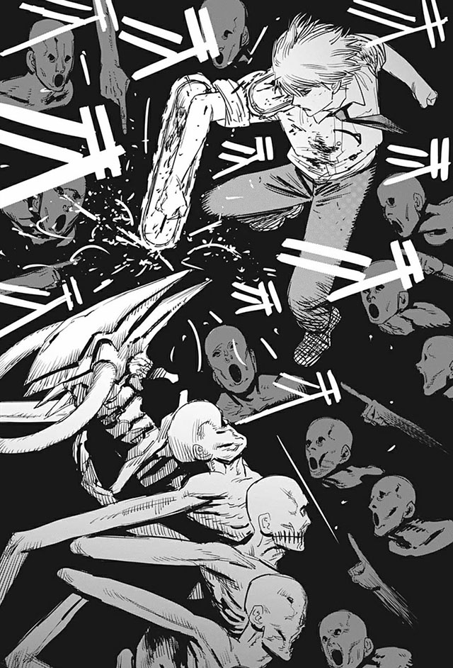 そして、4体の人間の合掌により、デンジの体中の骨が砕かれます。