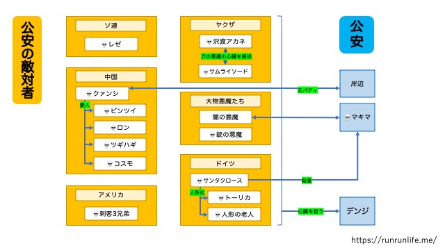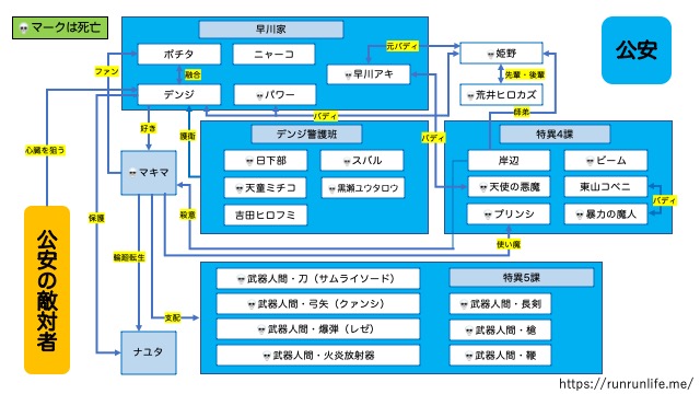 わかりやすく、解説するために「チェンソーマン」に登場するキャラクターの相関図を作成しましました。