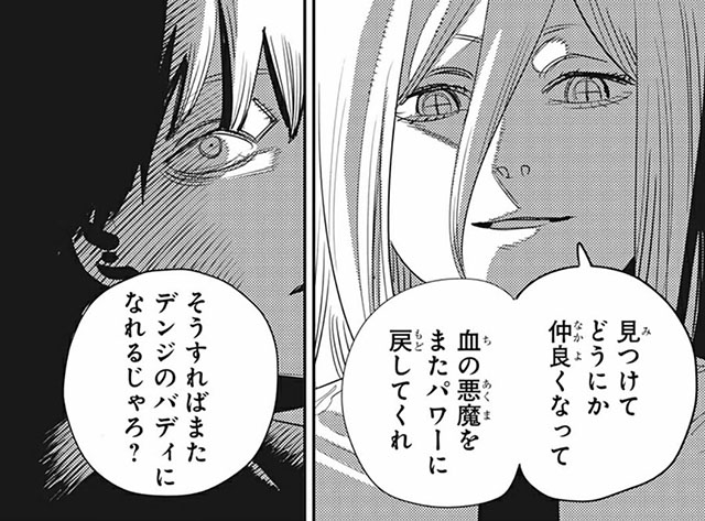 戦い後も、渇望していたマキマとの旅行を断り、闇の悪魔によってトラウマを植え付けられたパワーの介抱を優先しました。