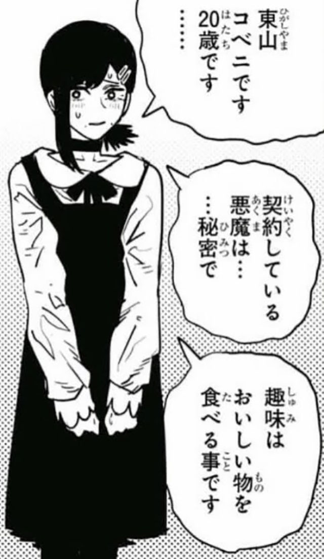 - 東山コベニは、公安対魔特異4課所属の新人デビルハンター
