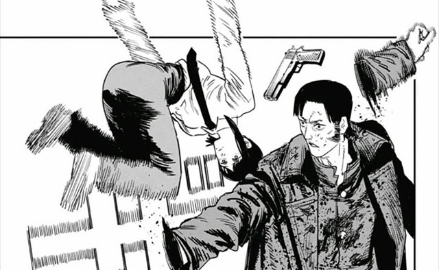 さらには、反撃に出た沢渡の発砲を倒れているデンジを引き起こして防御する冷静な判断力を見せています。