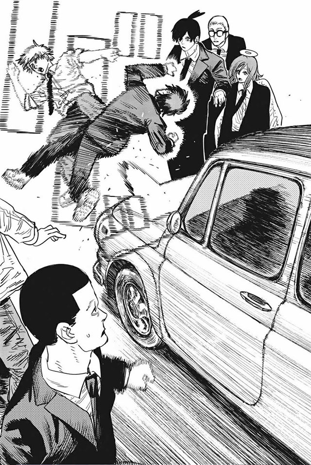 ただの偶然ですが、家族の為にと購入したばかりの愛車を、パワーに強引に乗られて運転され、アメリカからの刺客の三兄弟(皮の悪魔と契約)の一人を、デンジと一緒に轢き殺しています。