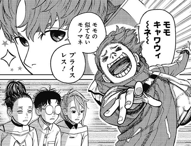モモの背中に見えた超能力の手を悪魔の翼が生えていると勘違いし、モモが悪魔だと思いこんでいる。