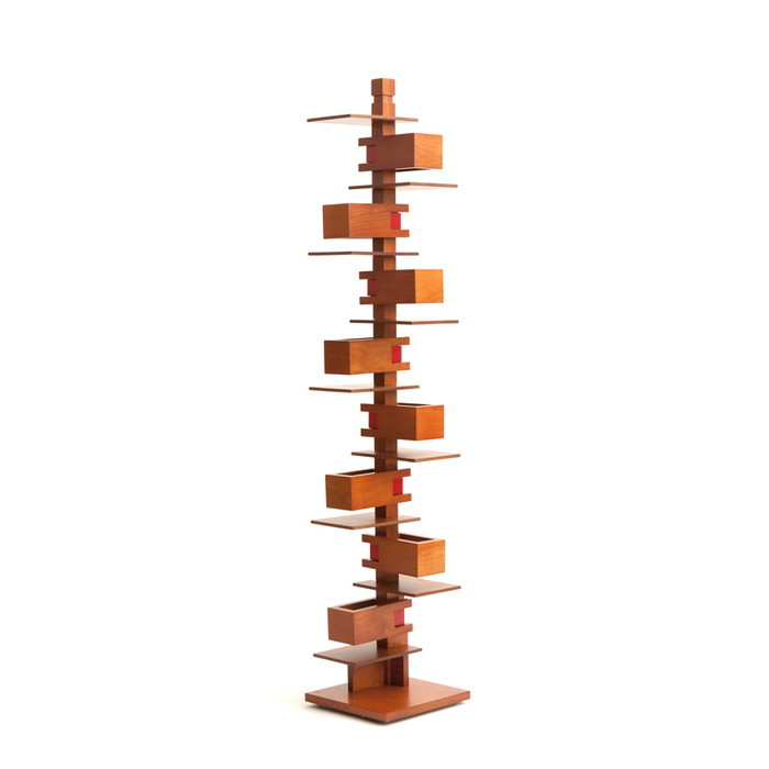 「TALIESIN 2」は、その中でも名作として知られ、世界中で愛されているフロアライトです。幾つものチェリー材のブロックで制御された上下方向の光はさらに遮光板に反射することで直射せず、間接光の心地良い明るさが得られる設計になっています。消灯時もインテリアとして抜群の存在感を発揮します。