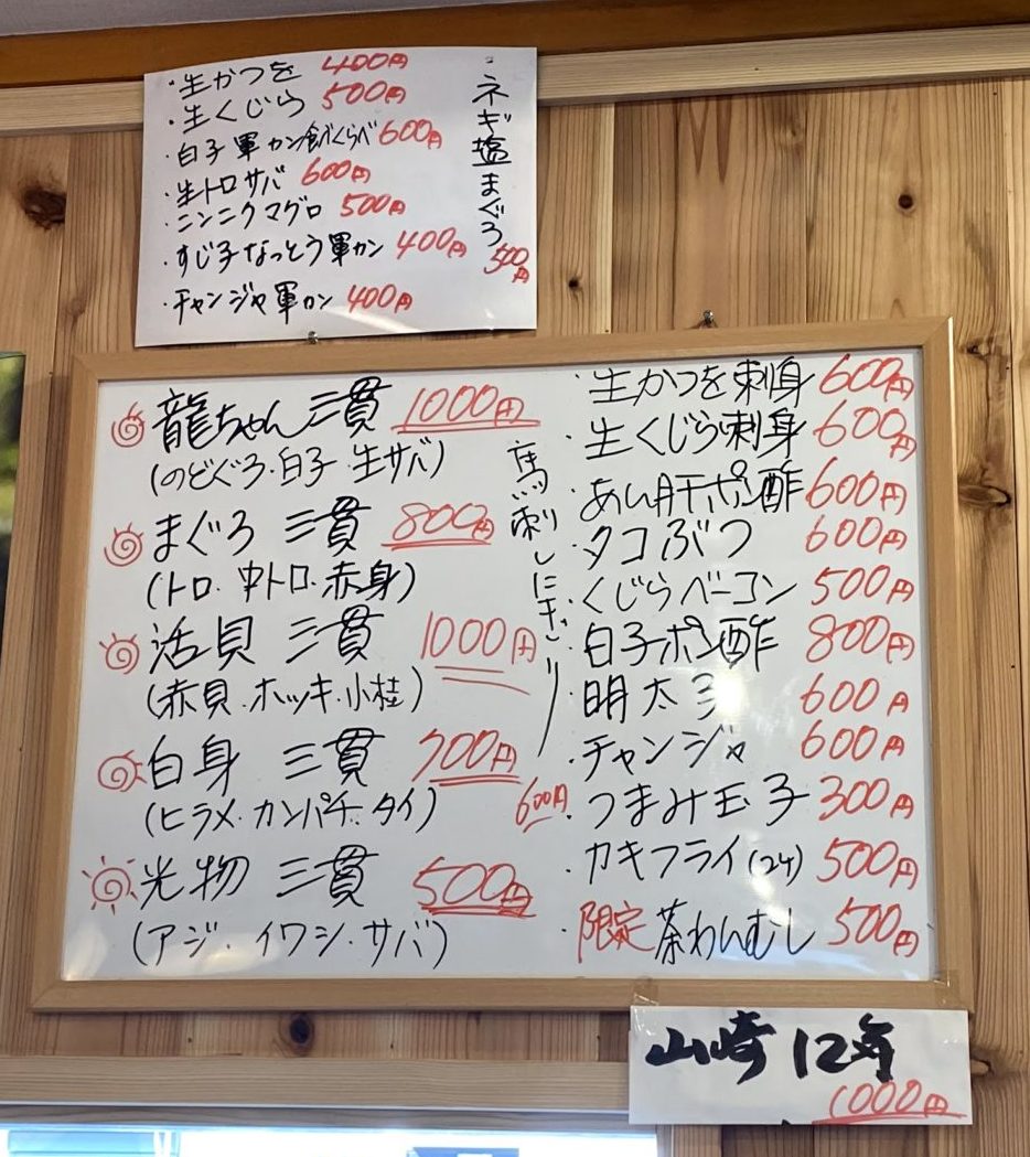 本日のおすすめメニューはこんな感じ。こういうホワイトボードは町寿司感あって最高ですね。