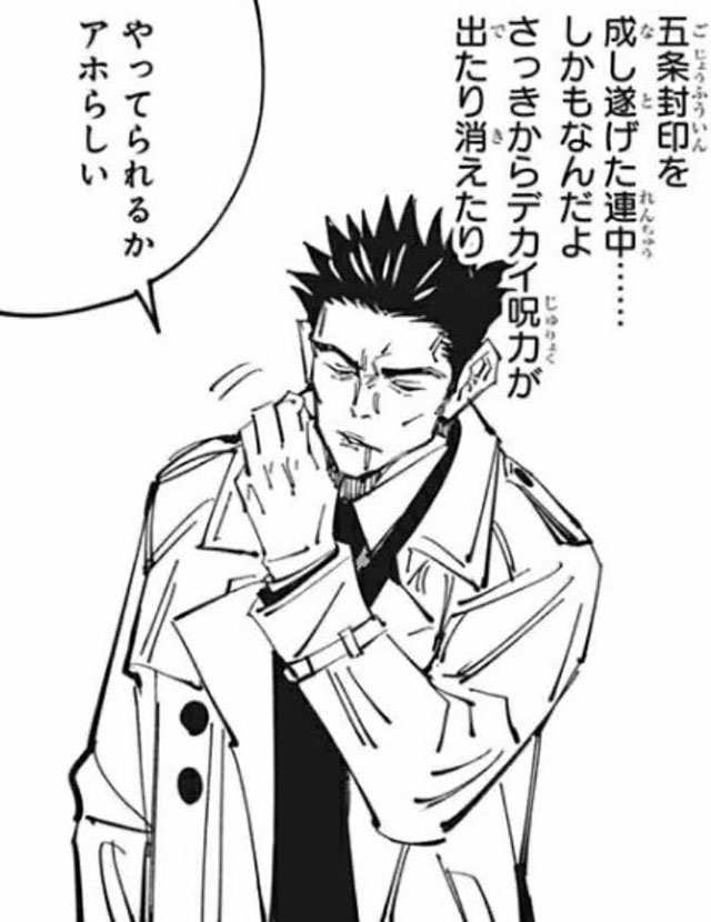 さらに虎杖と合流後は、前述の通り、生徒の身を守る熱い一面も見せるが、裏梅の氷擬呪法で半分凍らされた時には「呪術のスケールが段違いだ。帰りてぇ~~」と漏らすなど、基本的にネガティブ思考。