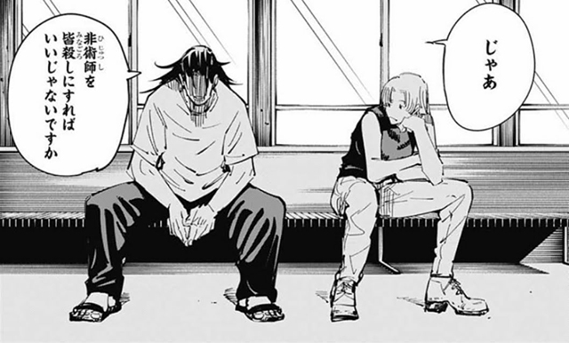「非術師」「術師」「呪霊」が呪い合えば、まず最初に力のない非術師が淘汰されるわけですから。