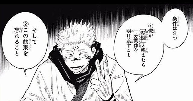 1. 俺(宿儺)が「契闊(けいかつ)」と唱えたら1分間体を明け渡すこと