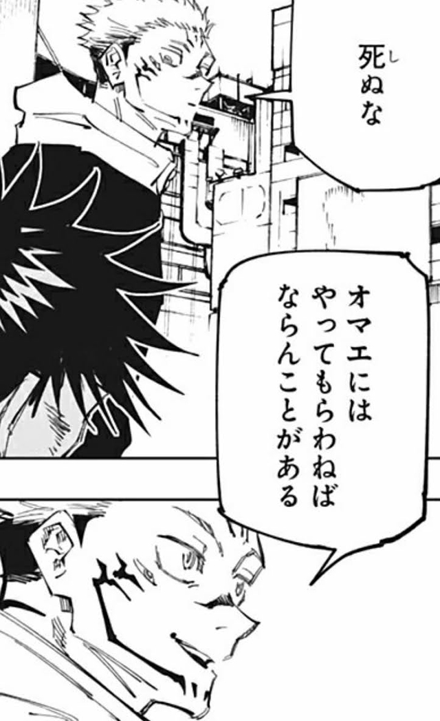 しかし、渋谷事変における重面春太との闘いで、「八握剣異戒神将魔虚羅(やつかのつるぎいかいしんしょうまこら)」を発動し、仮死状態に陥った伏黒恵を宿儺は反転術式で生かしました。