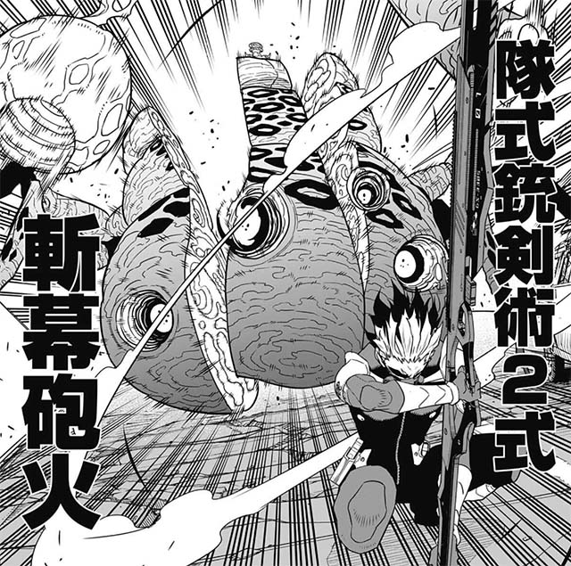 第48話では、隊式銃剣術2式「斬幕砲火」が発動されました。