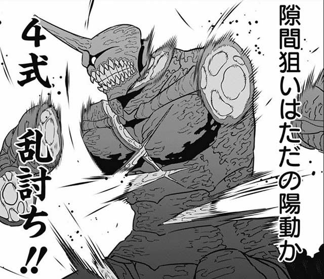 第56話で、拘束中の怪獣10号が目を覚まします。