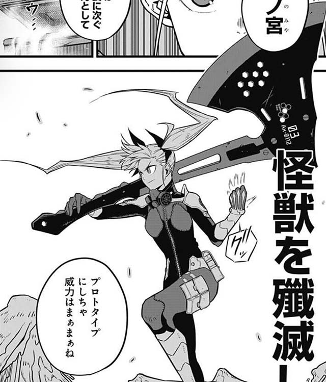 - 四ノ宮キコルは、隊長クラスにのみ与えられる専用武器を特例で与えられている