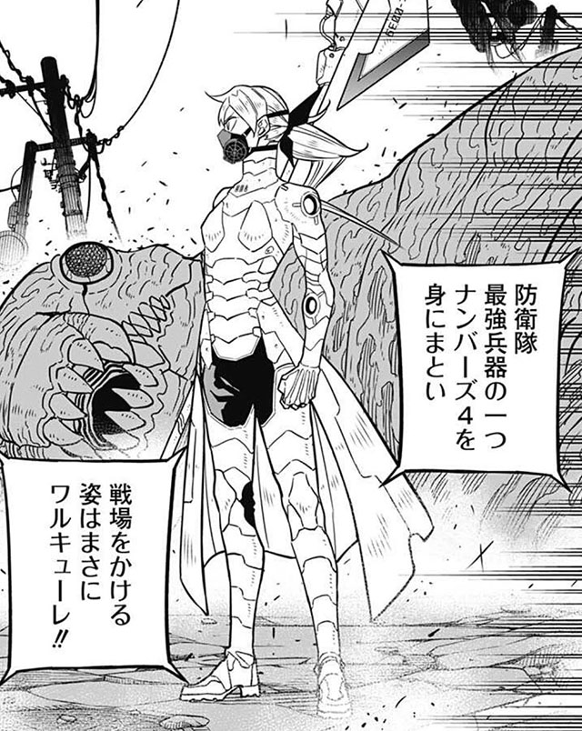 四ノ宮キコルは、日比野カフカ、市川レノらと同期で、防衛隊首席入隊。