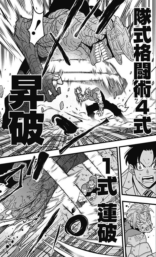 保科やキコルは、刀や斧を使用した術式なので、それぞれ刀伐術、斧術と呼称されていましたが、四ノ宮長官の識別怪獣武器は身体と一体化しているため格闘術なんですね。