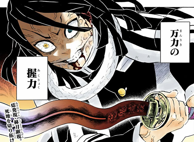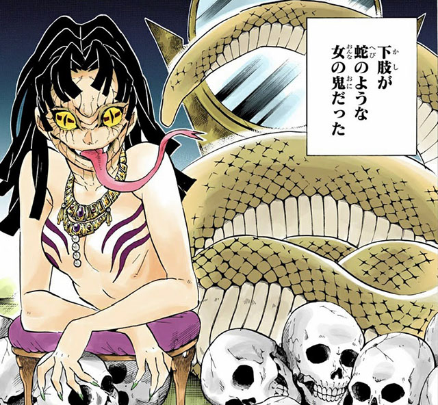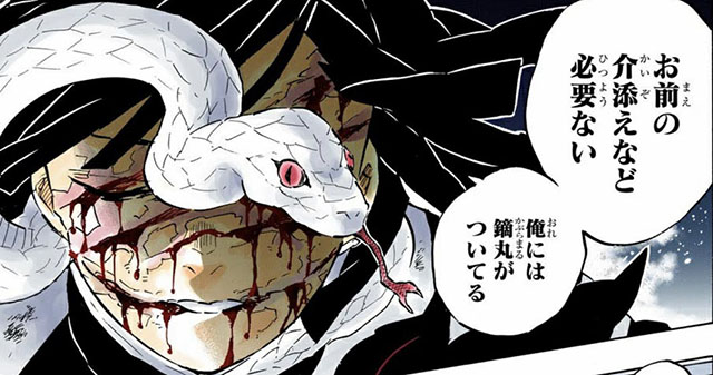 伊黒は脱出しましたが、蛇の鬼に気づかれ、追い詰められます。