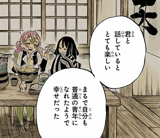 その後、自分の事を卑下しながら、鬼殺隊に所属して鬼を狩り続けたのです。