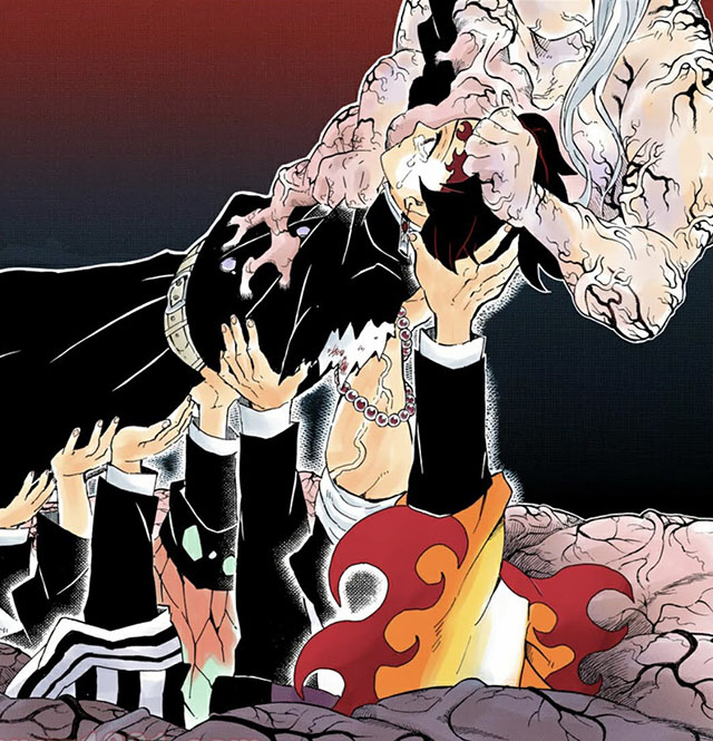 伊黒は戦いの中で、かつて牢を出る際に死ぬ気で簪を使って脱出した事、時透無一郎(ときとうむいちろう)が刀を赫くしたのも握力によるものだった事を思い出します。