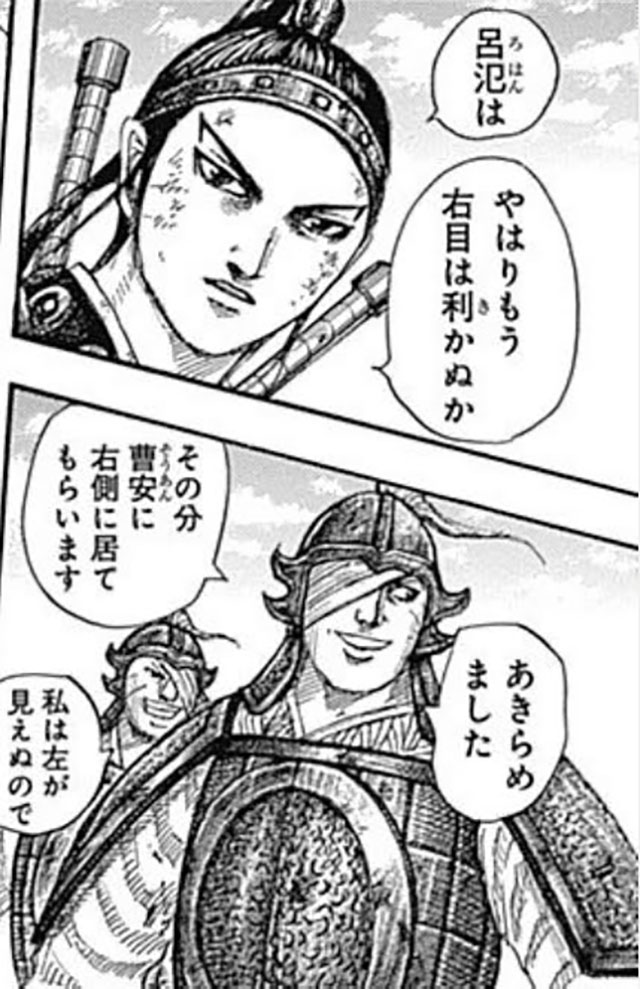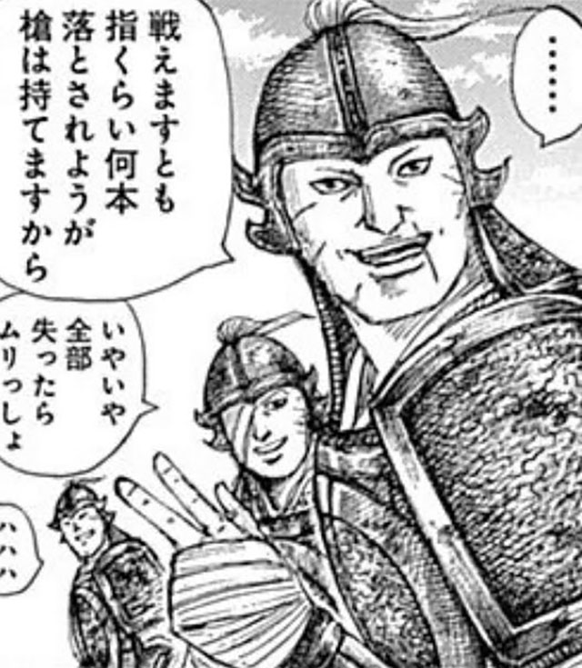 朱海平原の戦いで、指数本失ったが、王賁の「その手で戦えるのか?」という問いかけに笑顔で応じた。