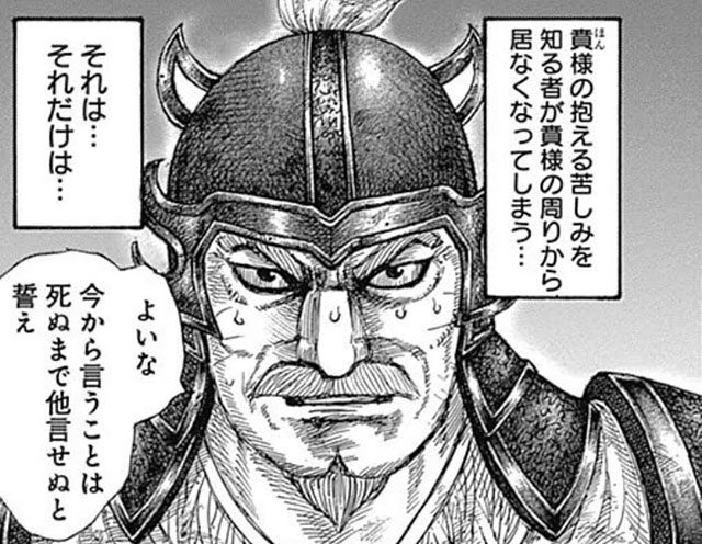 そのため、王賁が危機に追いやられ瀕死の状態を目にすると、涙を流しながら慌てふためく様子も描かれている。