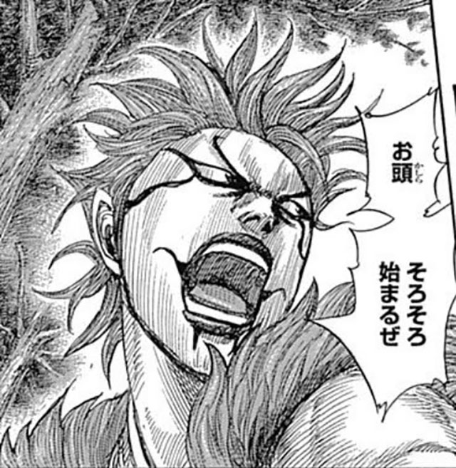 元々は別の野盗団の頭だったが、桓騎の野心、将としての才覚に心酔し、その配下になる。