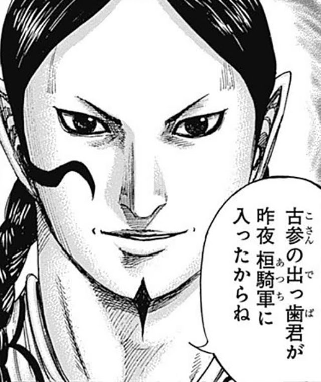 那貴の側近で、もとは桓騎軍所属だったが、那貴飛信隊移籍に伴い飛信隊将校になる。