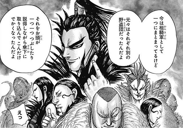 • 桓騎将軍の配下には、元野盗の一癖も二癖もある人材が集まった