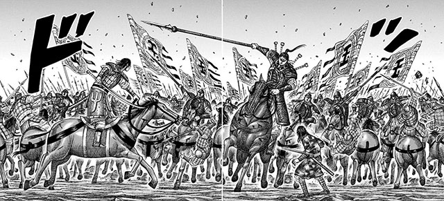 開戦より12日目の朝、隊を覚醒させ一気に趙軍左翼を押し込みにかかった王賁と信。
