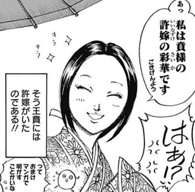 王賁は作中では許嫁であった彩華(さいか)と結婚します。
