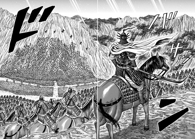 抜かれれば函谷関を横から突かれて突破されてしまうという重要な守備についた王翦だがオルドの攻めに後退。