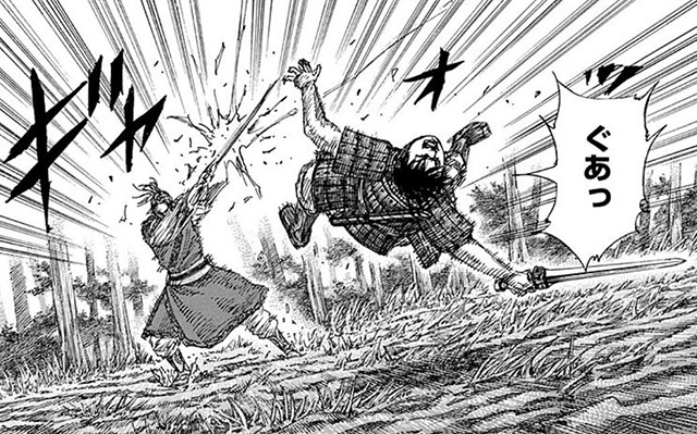 李牧がただの軍師ではなく強靭な体を持っている武勇も兼ね備えた武将であることに気づいた信は、それを確認するため一騎打ちに応じた。