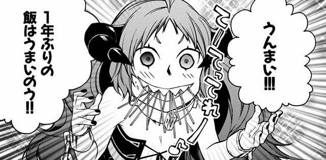 この時キシリカは、飢餓状態で倒れており、ルーデウスが与えた串焼きによって気力を取り戻しました。