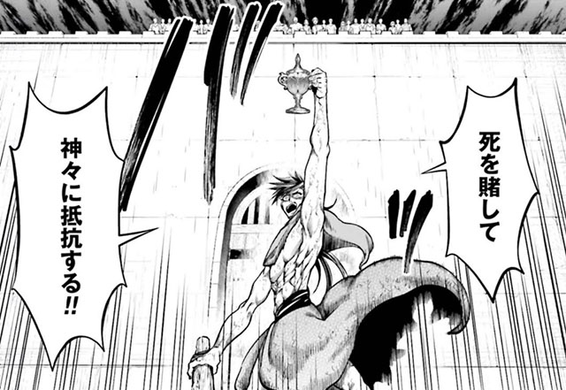 自分が勝利したらゼウスに人類救済を申し出ると言ったヘラクレス。