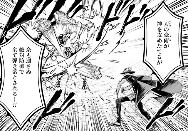 戦いながら張り巡らせて宙に浮かぶ事も出来、それを利用してナイフを雨のように降らせたりしました。