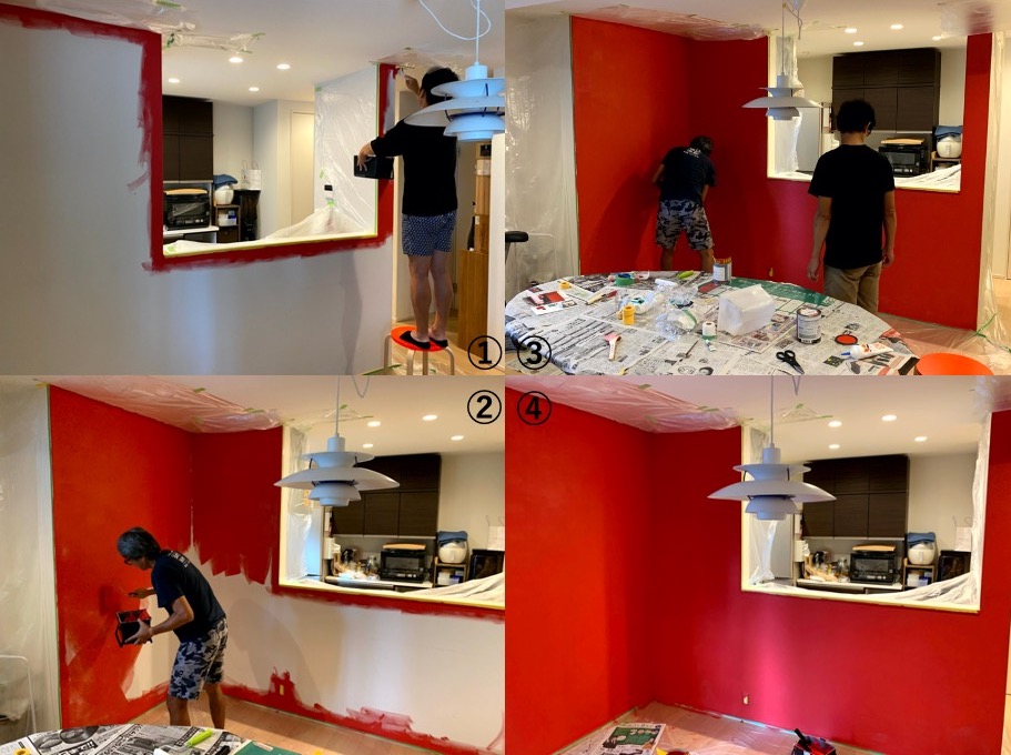 そして、ウォール・ペインティングは2度塗りが基本(色によっては下塗りとあわせて3度)なのですが、