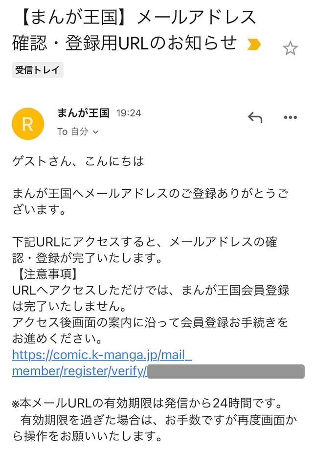 - 入力したメールアドレスに登録案内メールが届きます。メール本文に記載のURLをタップ
