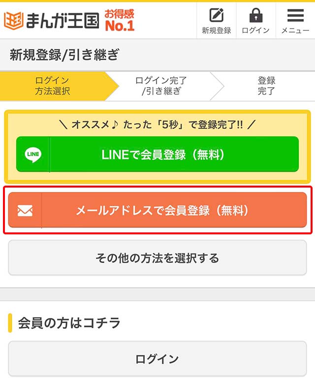 ↓↓↓ まんが王国の登録はこちらから ↓↓↓