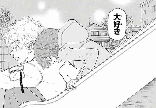 タケミチが別れを切り出したのは、父親のせいだと分かった後、タケミチから別れたくないと懇願された場面。