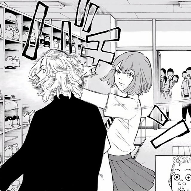 不良に拉致されると勘違いしたヒナがマイキーにくらわせたビンタ。
