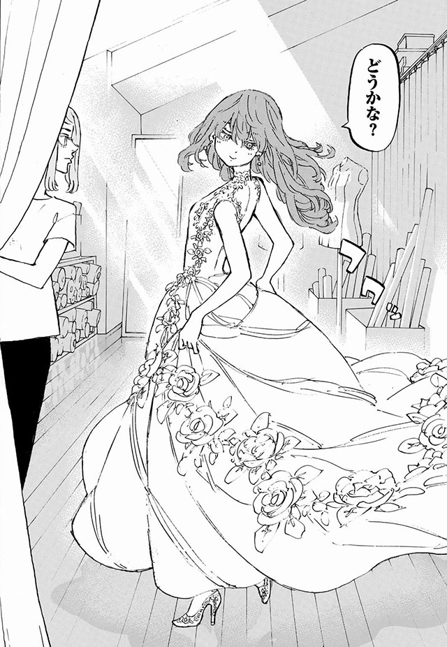 ヒナのウェディングドレスを作るのは、デザイナーの卵になっていた三ツ谷でした。