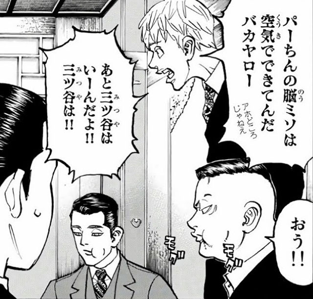 | 「血のハロウィン」後の現代の東卍の幹部会にて | パーちんの脳ミソは空気でできてんだバカヤロー!アホどころじゃねえ |