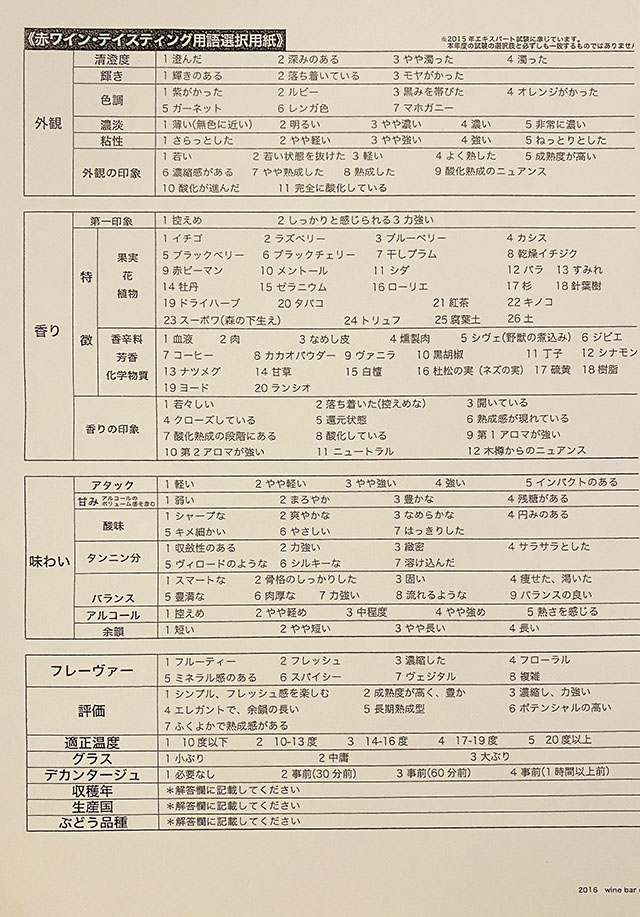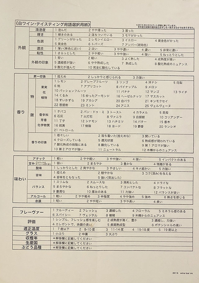 それでは、まず2次試験のテイスティング用語項目と解答用紙を確認しましょう。