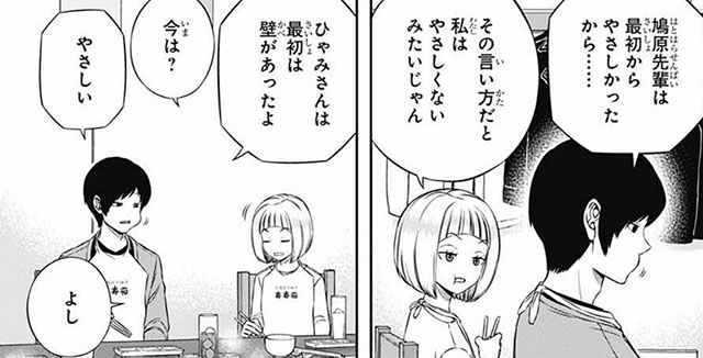 烏丸と接することに比べたら、他の人に対する緊張など取るに足らないものだと、本人の中で意識改革がおこなわれた。