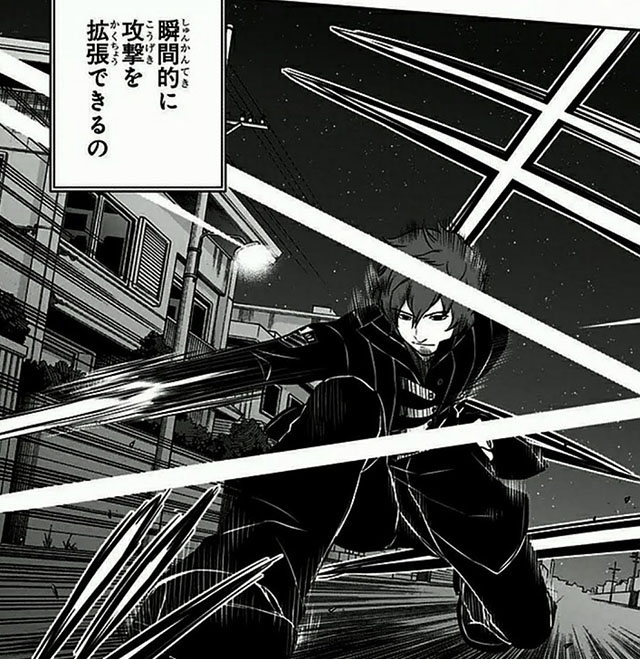 攻撃の回避や一気に有利な位置に回り込む等が可能で、嵐山隊の嵐山准と時枝充の連携攻撃「十字砲火(クロスファイア)」に一役買っている。