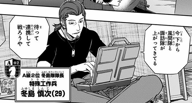 冬島の戦術の元、オペレーター真木が補佐し、当真が正確無比な狙撃で仕留める少数精鋭部隊。