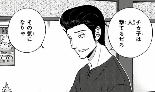 お好み焼きかげうらでみんなで、ご飯をしたとき、雨取千佳は「人が撃てる、撃てないの話」になったとき、唯一当真だけは「チカ子は人を撃てるだろ」と言い切っていた。