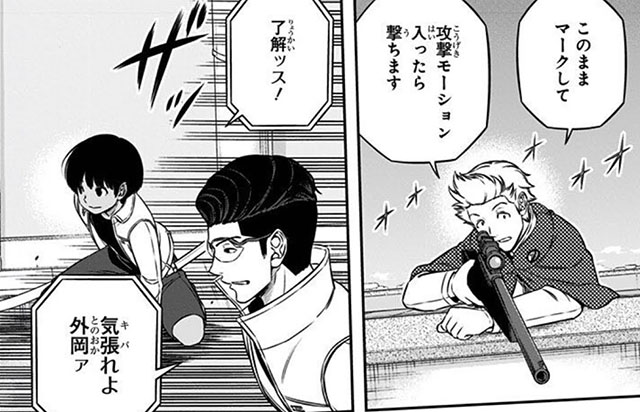 捕捉・掩蔽訓練で上位入りする隠密行動の巧さに加え、精密狙撃のスキルも申し分なし。ROUND8では、貯水タンクからほんの僅かにハミ出した雨取隊員の炸裂弾キューブを見事撃ち抜きました!#ワールドトリガー#外岡隊員お誕生日おめでとう pic.twitter.com/xzBFFkGYgs— ワールドトリガー公式 (@W_Trigger_off) November 20, 2020