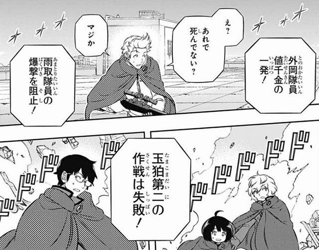 弓場隊、三雲隊、生駒隊、二宮隊のランキング戦では、ひたすら雨取千佳をマークし隠密行動を決めています。