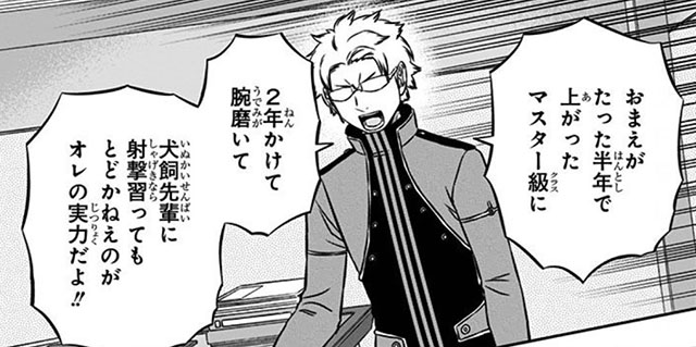 メガネと鋭い目つきが特徴で、B級として伸び悩んでいる高校生隊員。