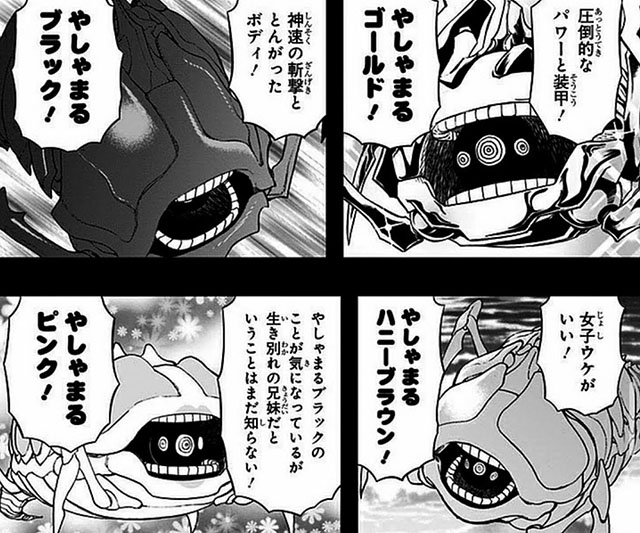 • やしゃまるピンク:やしゃまるブラックのことが気になっているが、生き別れの兄妹だということはまだ知らない。
